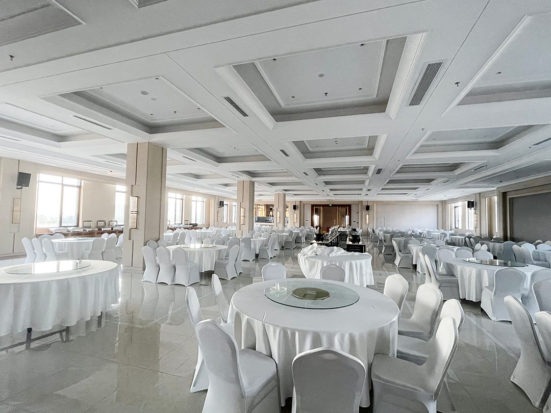 宴會廳需滿足大中型集會、聚餐及慶典活動等功能需求。宴會廳同樣采用了若干只M10固定安裝音箱好和若干臺MI系列數字功放。