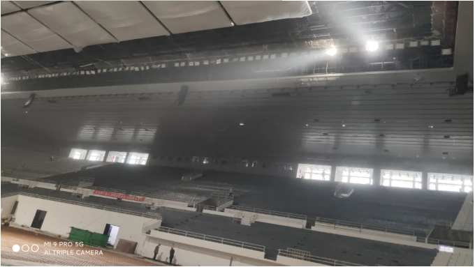 天博國(guó)際有限公司現(xiàn)場(chǎng)總負(fù)責(zé)人林社麟先生說(shuō)道:“我們現(xiàn)場(chǎng)進(jìn)行安裝工作的時(shí)間十分有限,因此我們?cè)诘孛嫔习丫€陣列音箱組裝起來(lái),并按照模擬軟件NS-1計(jì)算出來(lái)的角度和方向,調(diào)整好每個(gè)音箱,再把音箱吊掛到離地面十多米的位置固定好。再通過(guò)Dante網(wǎng)絡(luò)在電腦上使用NeMo軟件遠(yuǎn)程操控。將音量,增益,延時(shí),分頻點(diǎn)及輸出跳線設(shè)置好,并對(duì)音箱進(jìn)行檢查。最后這個(gè)體育館具有聲壓均衡且高清晰度的效果。”