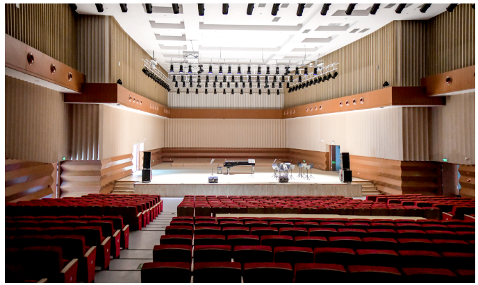 “琴島”音樂廳建筑面積2100平方米,內(nèi)部結(jié)構(gòu)呈扇形狀,扇形音樂廳的天頂呈等勢的遞進(jìn),目的是令聲學(xué)能量均勻擴(kuò)散。在這種音樂廳中,聲樂的直接信號更容易送達(dá)。