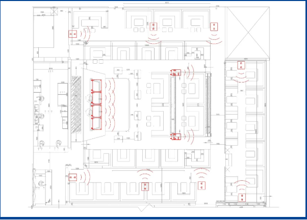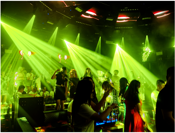 EV娛樂旗艦系列雙12寸三分頻線性陣列音箱搭配FX-2單12寸內置兩分頻音箱組成舞臺及中央區域擴聲。FX-4雙12寸內置兩分頻音箱確保后場直達聲充足且整個場地的聲場均勻。左右卡座實施點聲源補聲方案,由FX-3單15寸內置兩分頻音箱保證近場和遠場保持自然流暢的統一覆蓋。