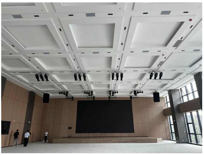 項目完美交付,巨大創(chuàng)意產(chǎn)業(yè)園多功能商務(wù)活動中心多功能廳室的聲場覆蓋均勻,整個會場擁有良好的聽感,還原人聲、真實呈現(xiàn)演講者的聲音,達到清晰洪亮的聽音效果,受到一致好評。