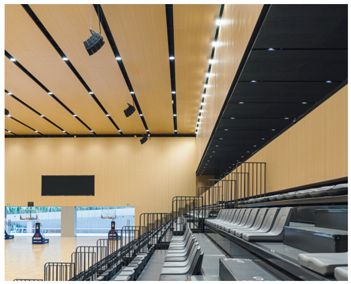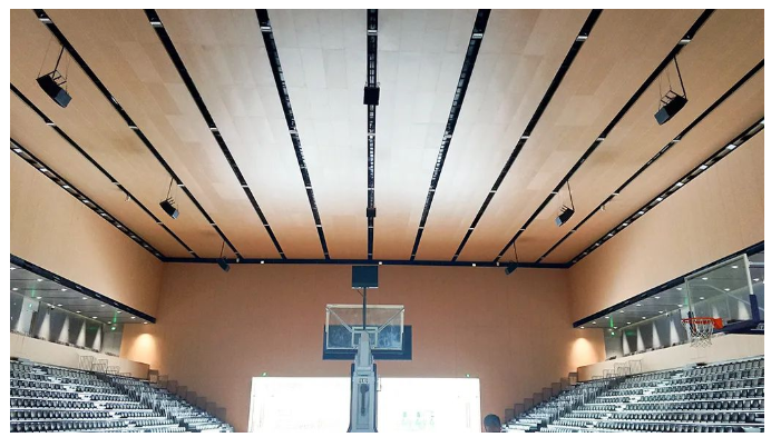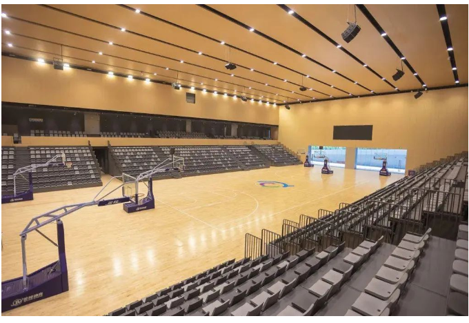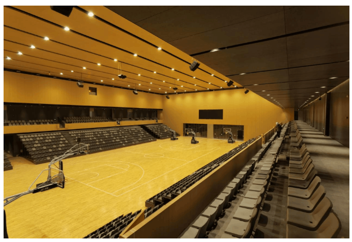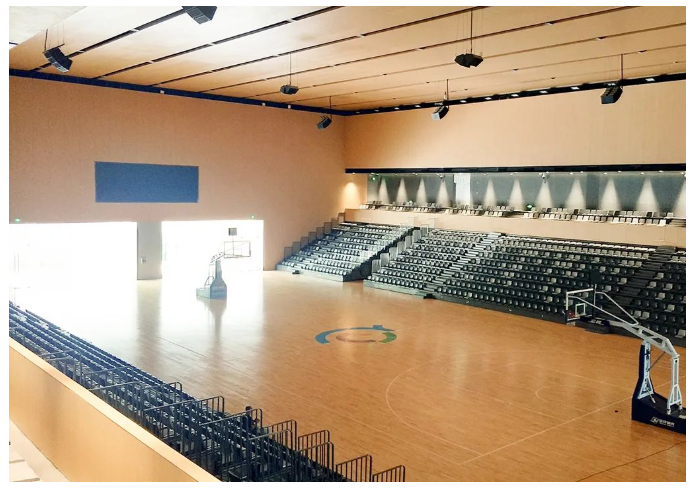 其中一層多功能綜合館,面積超過1200平方米,包含2000個(gè)坐席和3個(gè)籃球全場,可以承辦中小型賽事和活動(dòng)。在擴(kuò)聲系統(tǒng)的選擇上,面臨著場館層面積大,層高深,混響時(shí)間長,設(shè)備選擇需要滿足大聲壓級、高靈敏度、適合長距離投射和體積輕巧能減少高空懸掛的負(fù)荷,確保滿足極佳的指向性控制,保證音色的一致性,具備優(yōu)異的安全性和穩(wěn)定性。