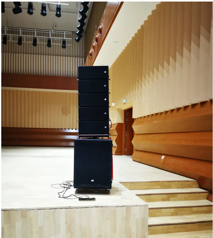 島”音樂廳音響系統(tǒng)采自意大利進(jìn)口品牌RCF音響,HDL有源線陣列系統(tǒng),舞臺(tái)返聽為兩組ART300有源系列音箱。