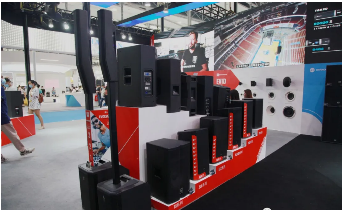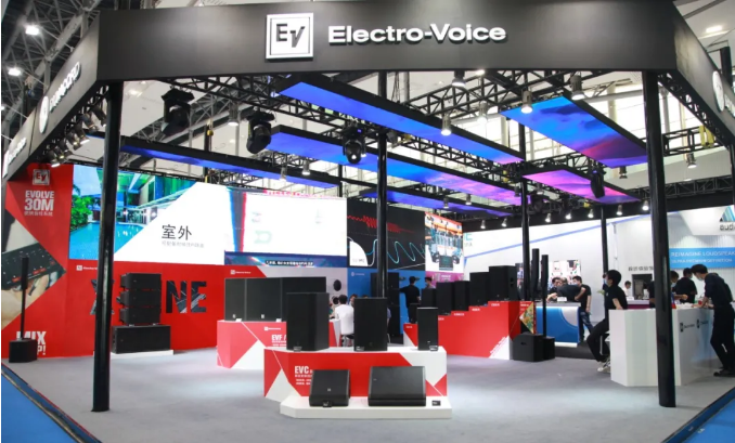 在洋溢著紅色的Electro-Voice區域,旗下EVC、EVF和EVH在內的固定安裝揚聲器家族、EVID及EVID-S商用音樂揚聲器家族為商業音頻及背景音樂系統帶來新可能;