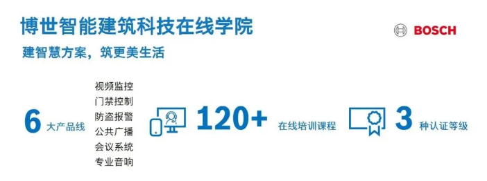 此外,博世中國還通過博世智能建筑科技在線培訓學院、在線直播會議等方式讓用戶和經銷商們能夠更好地利用疫情期間的時間進行產品知識的學習,四個月內一共上線了40節課程,打造了完善的知識架構和資格認證體系,參與人次超5000人。