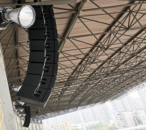 由于本次為改造項(xiàng)目,建設(shè)方無法提供音箱在頂棚安裝的條件,因此只能訂做安裝結(jié)構(gòu)進(jìn)行安裝,考慮到項(xiàng)目的使用環(huán)境,設(shè)計(jì)團(tuán)隊(duì)統(tǒng)一采用Wharfedale的WLA系列音箱作為該場館的主擴(kuò)聲系統(tǒng)。