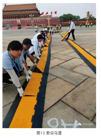 因此,為切實加強慶祝活動天安門廣場電力、信號等線纜規范管理,確保安全有序運行,根據市調度運營中心統一部署,音響保障指揮部對各指揮部報送的廣場區域流動線纜、馬道等設施的信息進行了歸納、整理,結合現場環境布置進行了統一設計。設計時,除了滿足各指揮部提出的需求之外,還按“強弱電分開”“不露明線”“便于敷設及撤除”“減少跨越”“就近出線”等原則,對廣場各類信號、電力線纜進行了統一設計和規劃,對線纜的走向、標識、敷設及拆除方案做了詳細的規定。